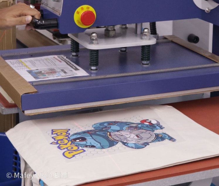 Cetakan heat press printing menggunakan mesin heat press yang menggabungankan elemen tekanan dan haba.