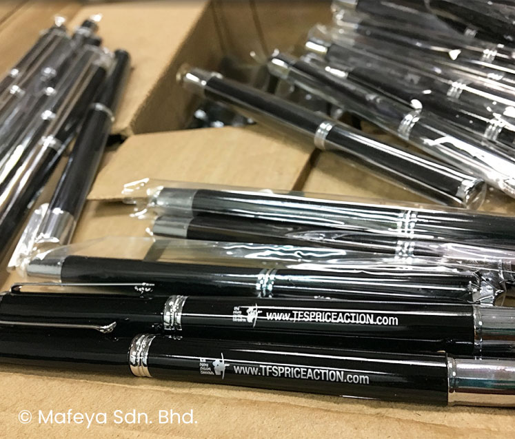 Jangan resah, jangan gelisah ya, kami di Mafeya Apparel ada untuk anda. Kami ada jika anda ingin menempah pen yang berkualiti dan harganya yang berpatutan.
